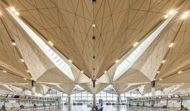 深圳宝安机场内部设计的也很有特点,它有38000多个天窗,用美国航空母舰的防水材料,造价高达85亿元人民币,高低明暗错落有致,满满的科幻感。